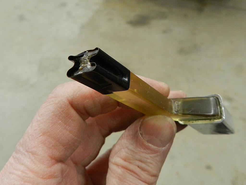 The passenger side A pillar molding has two dents. I found a very nice spare in storage