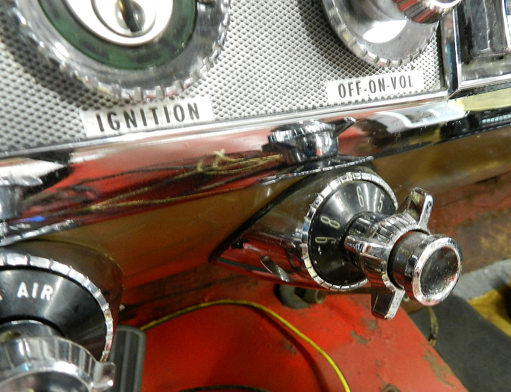 We are looking at making new felt barriers around the push buttons. The same piece fits 1960-1962 transmission and heater control buttons. These barriers keep the buttons from rattling and prevent light from leaking around the sides when the headlights are on. They are often in poor shape these days.