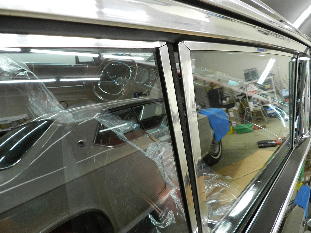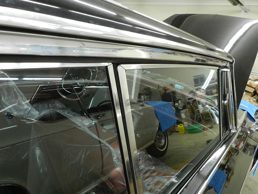 The roof rail gaskets and the quarter window gasket were replaced. Quirey has the new pieces. Removal of the roof rail gasket is easy. Except for the forward pieces by the vent window, the gasket is not glued and the old gasket pulls out of the retainer. Same for the quarter window vertical gasket. Be prepared to adjust your front window glass; the new gaskets are bigger and will cause the glass to tilt out. Adjusting the top stops should take most of the problem away. I adjusted both top stops to be a little lower and set the rear stop again a little lower. This gives the glass a little rearward tilt which helps close any gap between the front and quarter windows. We have a video here.
