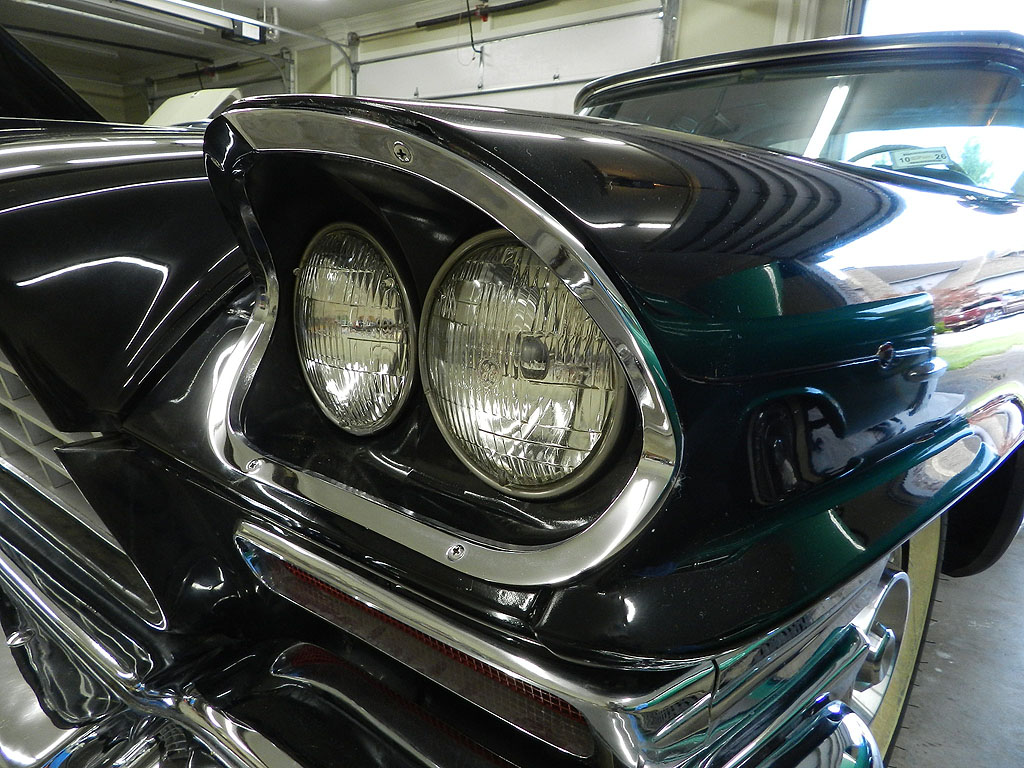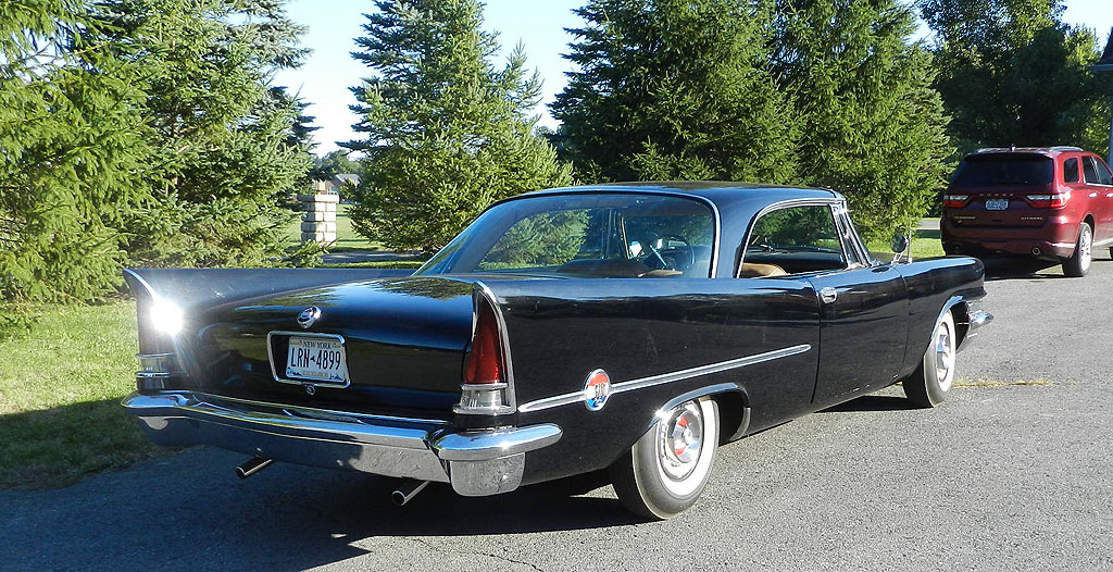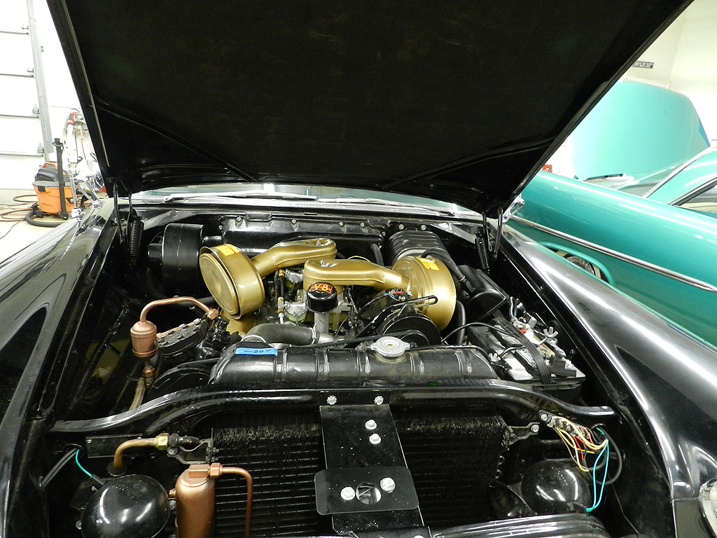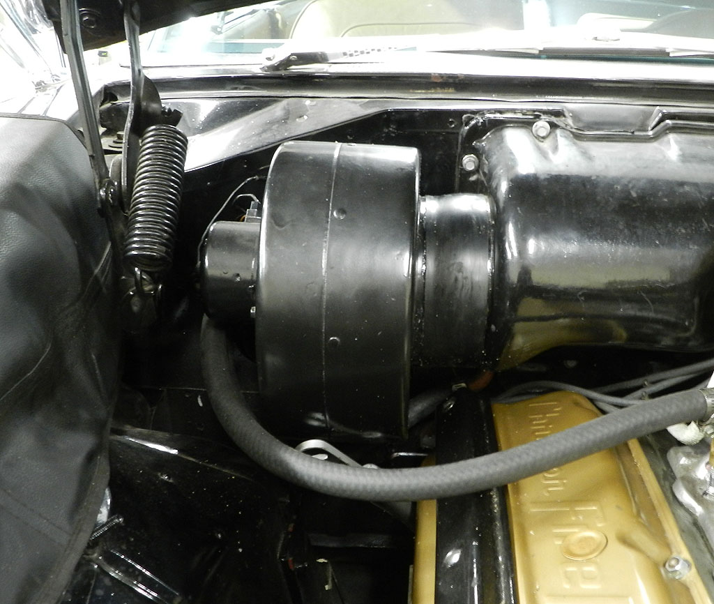 Installed the missing power brake booster vacuum reserve tank. The bolts didn't have much bite on the fender threads so extra nuts on the fender back side provided a secure connection. Installed wheel covers, gooseneck braces on engine and took it for a drive for the first time. The speedometer works, ammeter, oil pressure, fuel gauges work and it doesn't run hot. Steering is nice, brakes good. Drove around driveway, no smoke, has all 3 forward gears and reverse. Even the reverse lights work. Most times it starts quickly but now and then it is hard to start when hot, not sure why yet. Installed gooseneck air cleaners and Grady hood safety catch. Found the original hood catch mount plate nut had half broken at weld and was weak, plus they had the catch adjusted so it only caught the top catch. All fine now, hood shuts solid.