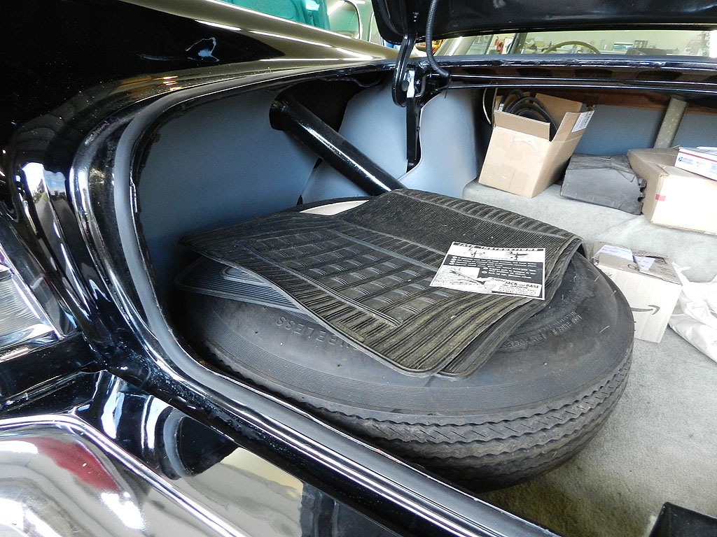 Reassembly is in full swing. The front seat is reinstalled along with the steering wheel, horn ring, and sill plates.