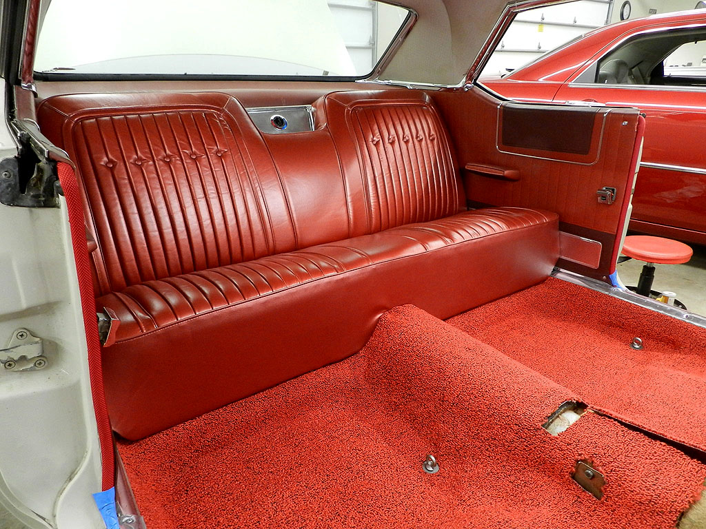 Moved on to carpet work, more on the rear foot well area. Worked on pass side, coming along. More work trimming and installing rear carpet. It is pretty well done needing holes for seat belt anchors and maybe slight trim at door sills.