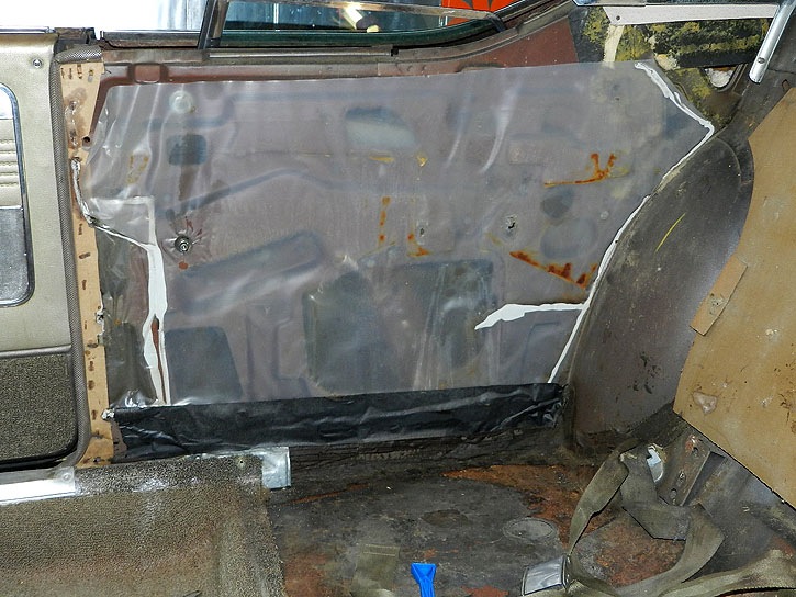 With the rear interior removed, the original vapor barrier was intact. |
