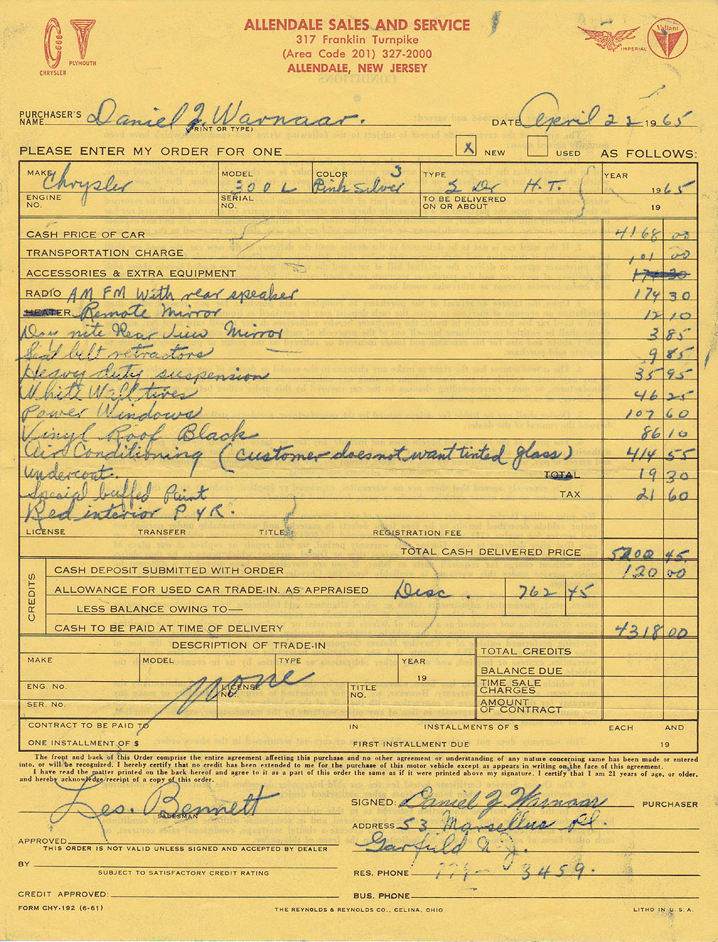 Here is the original sales order from the dealership