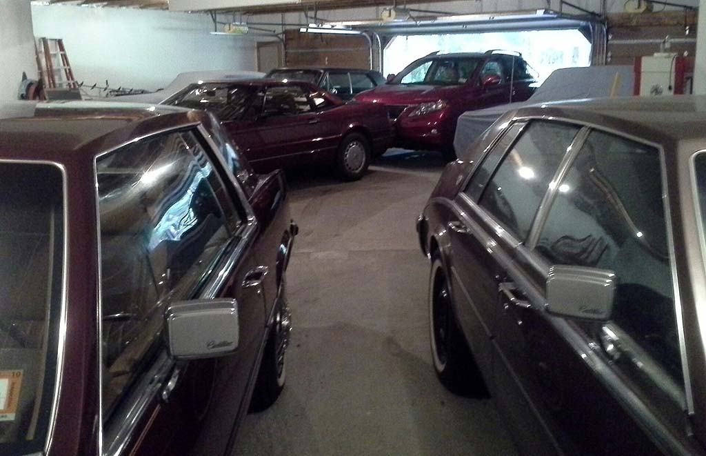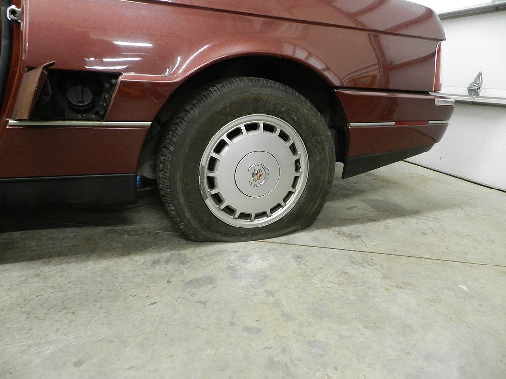 The car arrived at the garages one warm and windy day in February 2024. It was not running and the rear tires were flat. They had been flat so long they lost their seal on the rim. I took them to the tire shop where they re-seated both tires quick and easy. The hood and trunk struts are weak, new ones are on order. The interior needs to air out after sitting so long with the windows up. A good cleaning is also in order. There was a mouse nest in the engine bay but no damage. The gas cap was removed, I don't smell anything. Don kept records on this car and the last time it got gas was July 20, 2015 with the odometer at 51,777. The car has 100 miles since then. It turns out the tank is now empty, which is a good thing.